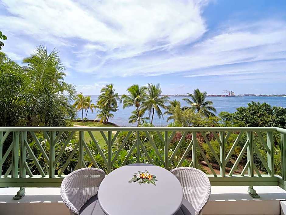Two Bedroom King Bed Ocean View Suite is 840 square feet and includes a king-size bed 150-183 width plus balcony, desk, satellite tv , safe, and bathrobes.